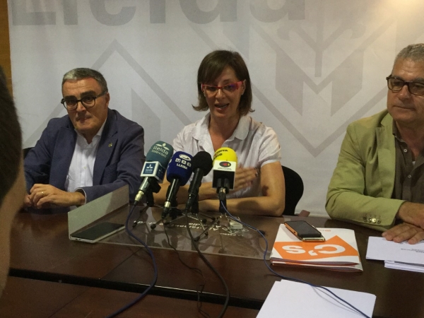 Redacción – La portavoz de Ciudadanos Cs en el Ayuntamiento de Lérida (Cataluña), Ángeles Ribes, ha destacado este jueves que «si la aceptación es positiva la intención de Cs Lérida es volverlos a llevar a los presupuestos de 2018». Lérida (España), viernes 6 de julio de 2017. Fotografía: La líder de Ciudadanos Lérida, Ángeles Ribes (c), el alcalde del PSC, Ángel Ros (i), este jueves 6 de julio de 2017, ante la prensa. Lasvocesdelpueblo.