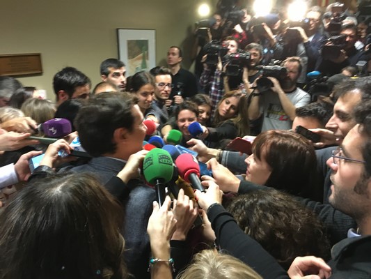Albert Rivera: «Hemos venido al Congreso a tomar posesión del acta y a empezar a trabajar para cambiar España de arriba a abajo», ha asegurado el presidente (C’s) que ha añadido que el partido «trabajará desde el primer minuto para hacer las reformas necesarias porque, si no hay legislatura, no habrá cambios». «Los españoles han votado cambio y Ciudadanos está en eso», ha afirmado.
