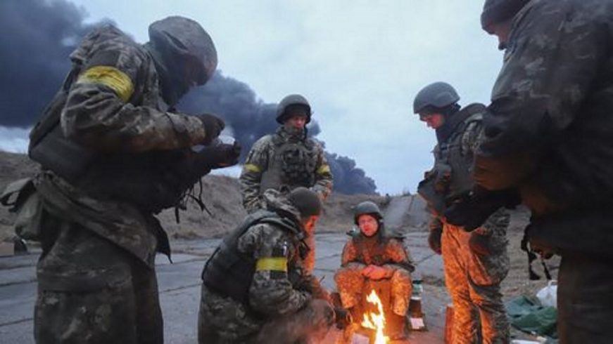 FOTOGRAFÍA. UCRANIA, 26.02.2022. Invasión rusa de Ucrania. Los valientes soldados y reservistas del Ejército de Ucrania y voluntarios del pueblo de Ucrania matan a varios centenares (2.800, según dados de Kiev) de militares del segundo Ejército más potente del mundo, el de Rusia del presidente Vladimir Putin y hacen fracasar la ofensiva rusa en tercer día de la agresión militar de Rusia a Ucrania. AP