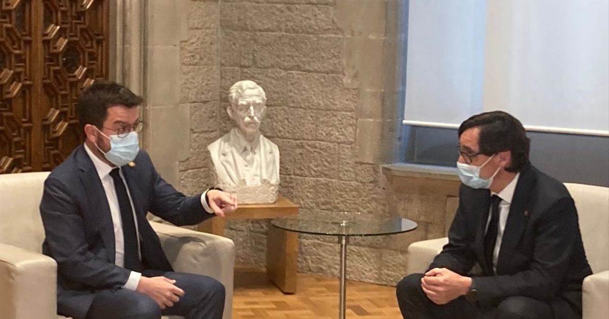 El presidente del Grupo Parlamentario del PSC en el Parlamento de Cataluña y el presidente separatista se han reunido esta tarde en el Palacio de la Generalidad de Cataluña, un encuentro «cordial y correcto» previsto desde hace días, y al que le seguirá mañana otro del antiespañol Aragoès con la líder de de Podemos en el Parlamento de Cataluña, Jéssica Albiach Satorres.