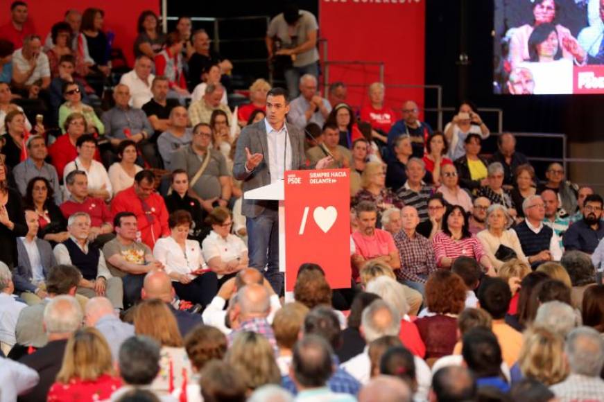 El presidente del Gobierno en funciones Pedro Sánchez ha dicho que para la derecha las elecciones son una «partida de parchís», porque su debate es «si la ficha verde se come a la ficha azul y si la ficha naranja adelanta a la azul», y ha pedido el voto a la «gente de derechas que considera que no hay derecho a esas tres derechas que sufrimos en España».
