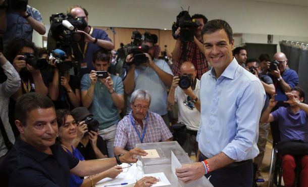 Efe – El secretario general y candidato del PSOE, Pedro Sánchez, ha animado hoy a los ciudadanos para que haya una participación «masiva» en las elecciones con el fin de que el próximo gobierno tenga «la máxima legitimidad posible». Madrid (España), domingo 26 de junio de 2016. fotografía: Pedro Sánchez, candidato socialista a la Presidencia del Gobierno, deposita su voto en un colegio de la localidad madrileña de Pozuelo de Alarcón. Efe.