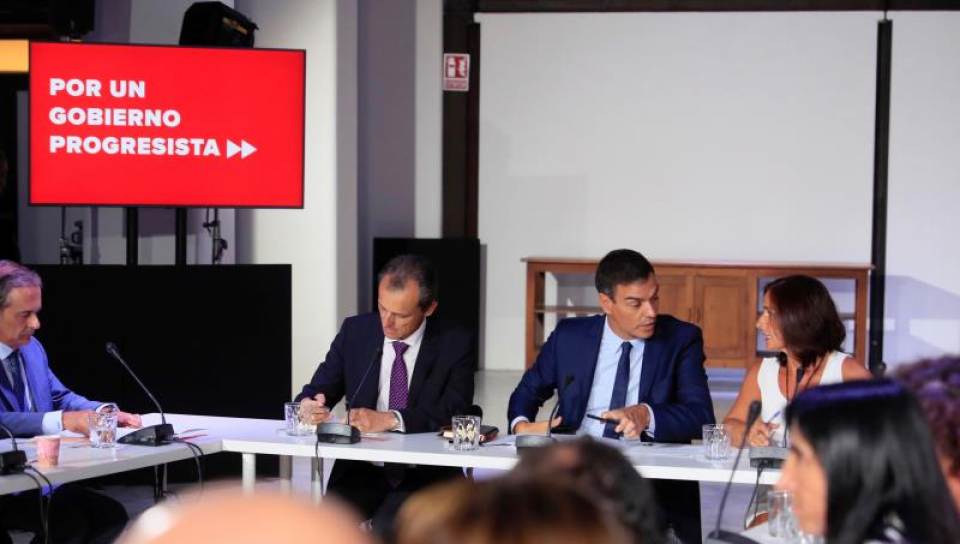 Lasvocesdelpueblo y Agencias – «Por un Gobierno Progresista (progre)», es el supuesto lema de precampaña electoral del PSOE al que están sometidos los representantes de entidades cívicas. El presidente de Gobierno en funciones del Reino de España, Pedro Sánchez (PSOE), ha continuado hoy con los actos de su precampaña electoral, en cubierto, con otra promesa electoral a los estudiantes de todo el reino español. El presidente en funciones ha afirmado que se trabajará para revertir los recortes e impulsar un nuevo sistema de becas y precios que «facilite la equidad e igualdad de oportunidades». Madrid (España), viernes 30 de agosto de 2019.