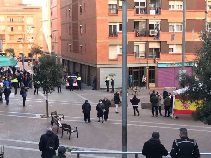 Según ha podido comprobar Lasvocesdelpueblo, al menos 50 individuos, movilizados por grupos extremistas del secesionismo y de extrema izquierda, han coaccionado a los vecinos de San Feliu de Llobregat que han acudido esta mañana para firmar sus avales para que VOX concurra a las lecciones catalanas de próximo domingo, 14 de febrero de 2021 (14F).