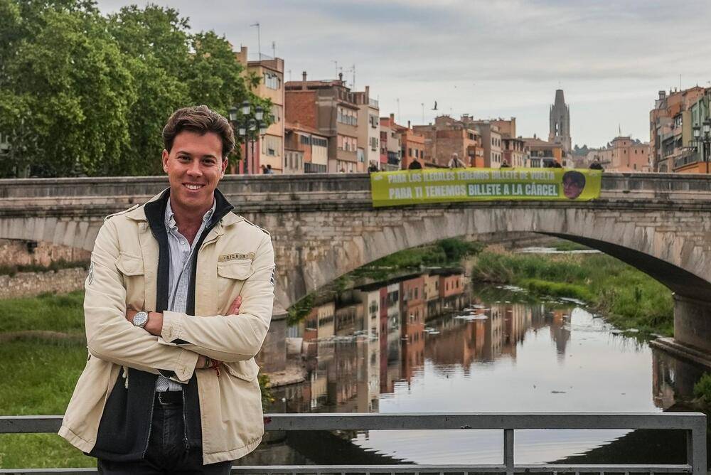 El político gerundense ha hecho estas afirmaciones este jueves sobre las 8:30 horas de la mañana cerca del «Pont de Pedra» de Gerona, donde los obreros gerundenses han colgado una pancarta gigante con el lema: «Para los ilegales tenemos billete de vuelta. Par ti billete de cárcel» con foto de Puigdemont, ante la atónita mirada de las personas madrugadoras de la población.