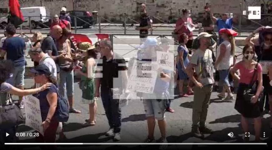 Lasvocesdelpueblo y Agencias.- Roma (Italia), lunes 30 de agosto de 2021. Incluye los recursos de la protesta de sindicatos y profesores frente al Ministerio de Educación de Italia contra el pasaporte COVID 19, la apartheid y nazismo que ha nacido de nuevo en Italia en el siglo XXI. Representantes sindicales y profesores se han concentrado este lunes ante el Ministerio de Educación italiano en Roma para protestar contra la obligación, desde el próximo 1 de septiembre, de que todo el personal escolar tenga el Pasaporte COVID 19 (Certificado Sanitario COVID 19) para poder entrar en los colegios, que es simplemente la vacunación obligatoria COVID 19.