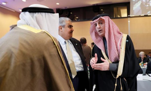 Efe – Representantes ministeriales de más de 70 países buscan hoy en París relanzar el proceso de paz entre israelíes y palestinos y apoyar la solución de los dos Estados, en un momento en el que ese conflicto ha quedado en segundo plano en la agenda internacional. París (Francia), domingo 15 de enero de 2017. Fotografía: El ministro de Asuntos Exteriores de Arabia Saudita, Adel al-Jubeir (dcha), habla al ministro de Relaciones Exteriores de Bahrein, Khalid bin Ahmed al-Khalifa (c), en la apertura de la Conferencia de Paz en Oriente Medio en París, Francia, 15 de enero de 2016. Efe.