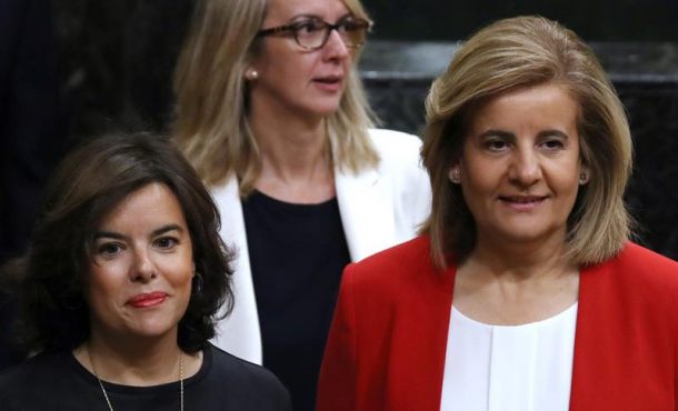 Lasvocesdelpueblo y Agencias – «Si el Gobierno de la Generalidad de Cataluña quiere acabar como está acabando, es su problema». «Cuando uno se embarca en una iniciativa absolutamente ilegal y divisiva, acaba dividiéndose uno mismo». «Pero uno no puede excusarse toda la vida detrás de los medios de comunicación, de los funcionarios o del resto de partidos sobre los que la presión es brutal», ha agregado la vicepresidenta del Gobierno de Reino de España, Soraya Saénz de Santamaria. Madrid (España), miércoles 12 de julio de 2017. Fotografía: La vicepresidenta del Ejecutivo, Soraya Sáenz de Santamaría (i), y la ministra de Empleo y Seguridad Social, Fátima Báñez (d), al inicio de la sesión de control al Gobierno celebrada hoy en el Congreso. Efe.