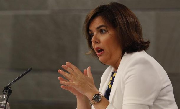 Lasvocesdelpueblo y Agencias – El presidente del Gobierno en funciones de España y candidato del Partido Popular (PP) a la presidencia de España, Mariano Rajoy Brey, hablará «con todos los grupos políticos» —incluidos los separatistas excluyentes de Juntos Por El Sí (CDC de Artur Mas Gavarró y Carles Puigdemont Casamajó y ERC de Oriol Junqueras Vies; los partidos pro-terroristas como EH Bildu; y con los extremistas podemitas de Unidos Podemos de Pablo Iglesias y Alberto Garzón— para tratar de sumar apoyos a su investidura con «rigor, seriedad y discreción» y consciente de que el Partido socialista Obrero Español (PSOE) de Pedro Sánchez Pérez-Castejón «forma parte del núcleo esencial de las conversaciones». Madrid (capital de España), viernes 1 de julio de 2016. Fotografía: La vicepresidenta del Gobierno, Soraya Sáenz de Santamaría, durante la rueda de prensa que ha ofrecido hoy tras la reunión del Consejo de Ministros, primera en funciones tras las elecciones del 26 de junio. Efe.