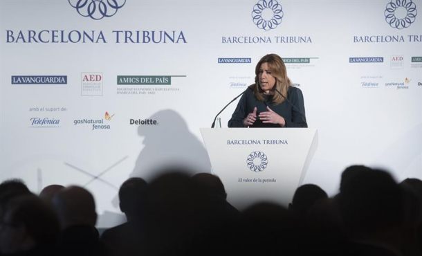 La presidenta andaluza y aspirante a liderar el PSOE, Susana Díaz, ha afirmado hoy en Barcelona que el president de la Generalidad, Carles Puigdemont, «sabe que no habrá referéndum», y ha esgrimido la Declaración de Granada socialista como vía para solucionar el encaje territorial de Cataluña.