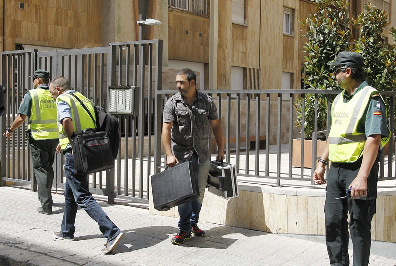 Lasvocesdelpueblo y Agencias – La Guardia Civil ha terminado de registrar sobre las siete de la tarde de este viernes el domicilio del ex-tesorero del partido separatista catalán y del gobierno autonómico del presidente Artur Mas Gavarró, Convergencia Democrática de Cataluña (CDC), Daniel Osàcar, en la calle Alicante de Barcelona. El registro se ha hecho enmarcado en la segunda fase de la operación ‘Petrum‘, que busca documentos que demostrarían que la empresa Teyco hizo pagos del 3% a la fundación separatista del partido del presidente Artur Mas Gavarró conocida como CatDem en comisiones por adjudicación de obra pública. <Fotografía: 1. Agente de la Guardia Civil saliendo de la sede central del partido de Artur Mas Gavarró, CDC, situado en la calé Córcega de Barcelona, esta noche, después de los registro y Foto 2. Agentes de la Guardia Civil saliendo del domicilio del ex-tesorero de CDC, Daniel Oscar, después de los registros. Fotos/Efe/ACN>.