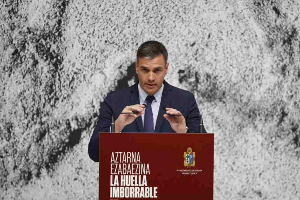 Efe.- Ermu (Vizcaya), domingo 10 de julio de 2022. El presidente del Gobierno, Pedro Sánchez, ha defendido en el homenaje a Miguel Ángel Blanco Garrido en Ermua (Vizcaya) construir una memoria colectiva que preserve los valores democráticas que encarnan las víctimas del terrorismo.