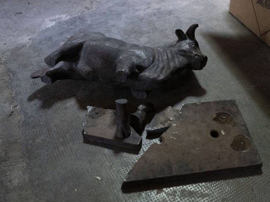 La columna sobre la que se asentaba la imagen original, pendiente de un proceso de restauración, se desplomó el pasado 19 de junio cuando se retiraban las 23 cuerdas que se habían atado a la misma en representación de las localidades que participaban en el Congreso Nacional del Toro de Cuerda.