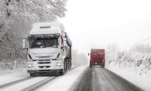 Efe – En Canarias, nuboso en el norte de las islas, con probables lluvias débiles y ocasionales. En Cataluña la cota de nieve estará entre 700/1000 metros; en el tercio noroeste, en torno a 400/700 metros, y en el resto entre 600/900 metros, subiendo durante el día en todas las zonas a 800/1.100 metros. Madrid (España), jueves 23 de marzo de 2017. Fotografía: En la imagen, dos camiones circulan sobre una carretera nevada en las cercanías del municipio de Palas de Rei (Lugo). Efe.