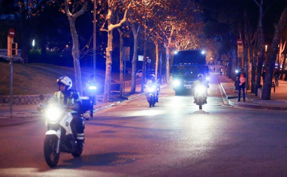 Tal como estaba previsto, todos los protagonistas del partido han llegado al estadio, desde el Hotel Sofía, perfectamente escoltados por la Guardia Urbana y los Mossos d’Esquadra, sin que durante el trayecto, de apenas de 400 metros, se registrará ningún incidente.