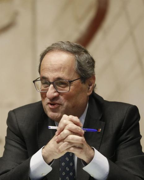 Efe – El presidente de la Generalitat, Quim Torra, ha avisado hoy al jefe del Gobierno, Pedro Sánchez, que, si no se «mueve» para poner sobre la mesa una propuesta relativa a la autodeterminación, el independentismo no permitirá la tramitación de los Presupuestos Generales del Estado (PGE). Madrid ( España ), miércoles 9 de enero de 2019. Foto Torra. Efe.