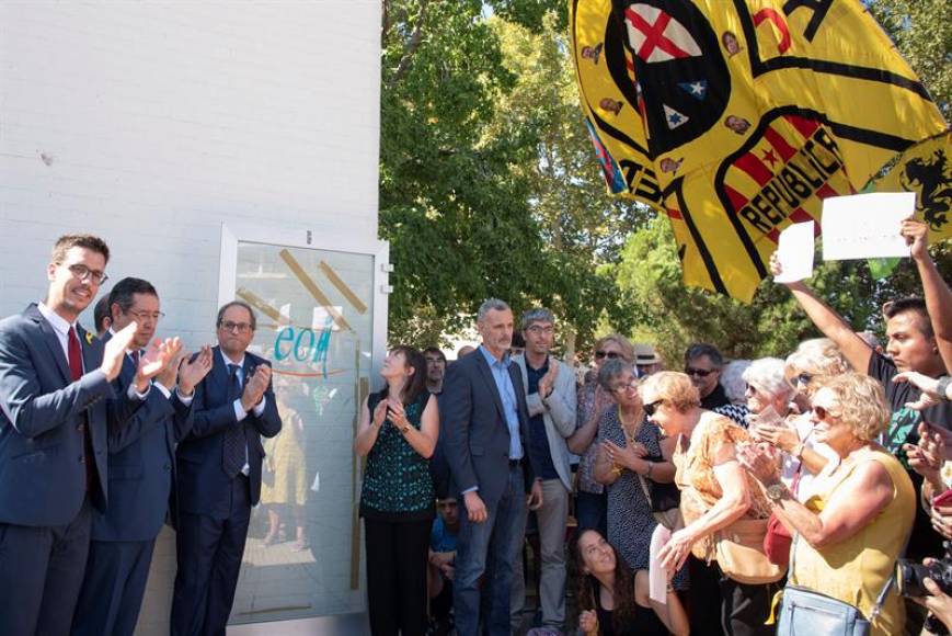 Lasvocesdelpueblo y Agencias – El presidente de la Generalidad de Cataluña, Quim Torra, ha lanzado un aviso a Sánchez: «No renunciaremos nunca al derecho a la autodeterminación y lo defenderemos, como defendimos el 1-O, pacíficamente y democráticamente, pero aquel espíritu de victoria nos acompañará siempre». «Desobedecimos y ganamos al Estado», ha destacado Torra, que ha asegurado: «Necesitamos volver a hacer lo mismo». Asimismo, ha advertido al presidente del Gobierno, Pedro Sánchez, de que «no renunciará» a defender el derecho a la autodeterminación de Cataluña. Lérida (España), viernes 28 de septiembre de 2018. Fotografía: LÉRIDA (ESPAÑA), 28.09.2018. El presidente de la Generalitat, Quim Torra (3i), descubre una obra conmemorativa del referendum del 1-O en la Escuela Oficial de Idiomas de Lleida. Efe.