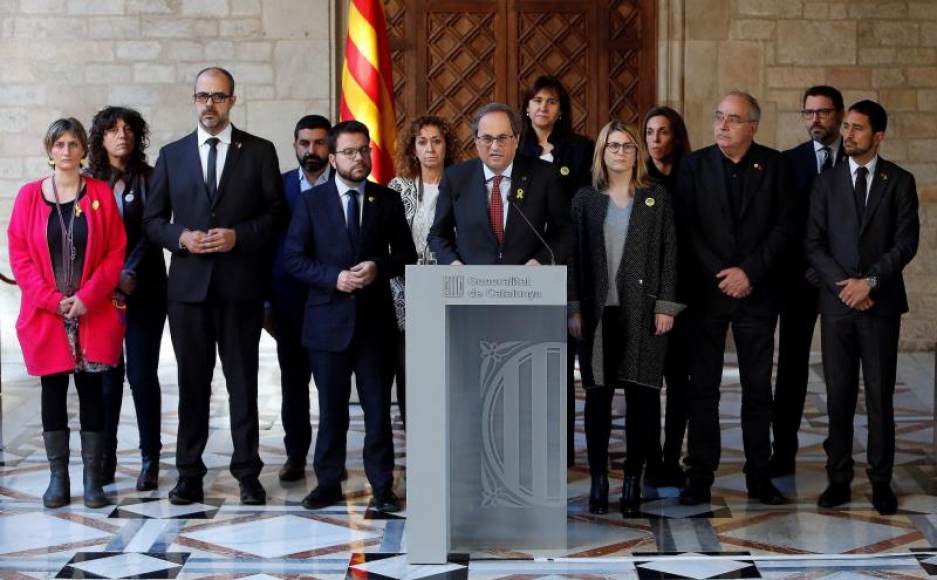 La declaración de Torra se ha producido justo después de la reunión del Consell Executiu del Govern, un encuentro extraordinario en el que se han podido ver rostros serios y cariacontecidos del presidente y sus consellers en pleno traslado de sus compañeros de partido y miembros del anterior gobierno catalán encarcelados.