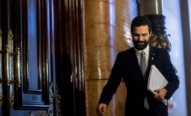 Efe – El presidente del Parlament de Cataluña, Roger Torrent: «No permitiremos quien decida a quién se inviste, que decida quién es presidente de la Generalitat sean los tribunales, sean los jueces y no la ciudadanía de este país». En términos similares se había pronunciado también ayer el cesado presidente de la Generalitat, Carles Puigdemont, quien acusó al juez Llarena de «usurpar la función que en democracia tiene el Parlament». Barcelona (España), domingo 11 de marzo de 2018. Fotografía: El presidente de la cámara catalana, Roger Torrent. Archivo Efe