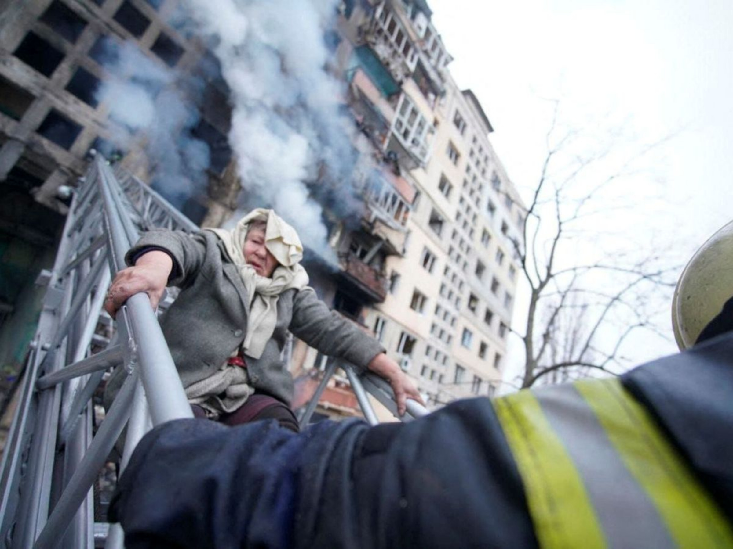 Efe.- Leópolis (Ucrania), lunes 14 de marzo de 2022. Al menos dos personas han muerto y otras tres han resultado heridas después de que un proyectil impactara esta noche contra un edificio de apartamentos en Obolonski, una zona residencial de Kiev.