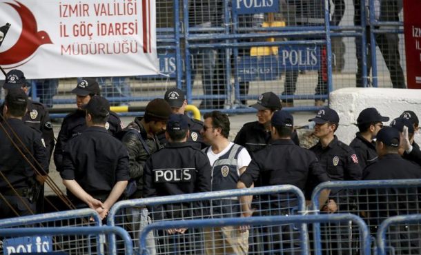 Agencias – Los guardacostas turcos han apresado este sábado, 28 de enero de 2017, un buque que transportaba a 270 emigrantes irregulares que habían embarcado en Estambul, presumiblemente para viajar a un país de la Unión Europea (UE). Estambul (Turquía), domingo 29 de enero de 2017. Fotografía: Policías turcos escoltan a un grupo de refugiados que fueron deportados desde la isla griega de Lesbos, a su llegada en barco a Izmir, Turquía, en abril pasado. Archivo Efe.