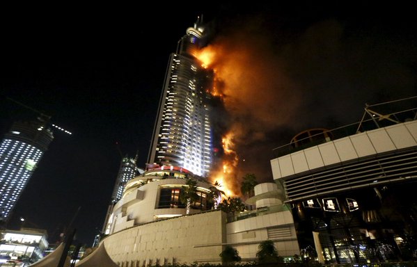 Parece que el fuego se ha originado fuera del edificio, justo al lado de donde se celebra la llegada del Año Nuevo. Todavía no se sabe qué ha originado el incendio. El hotel, con 196 habitaciones, 7 restaurantes y muchos servicios como gimnasio y spa, está situado al lado del edificio más alto del mundo, la torre Burj Khalifa.