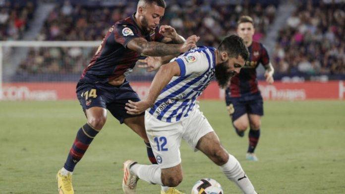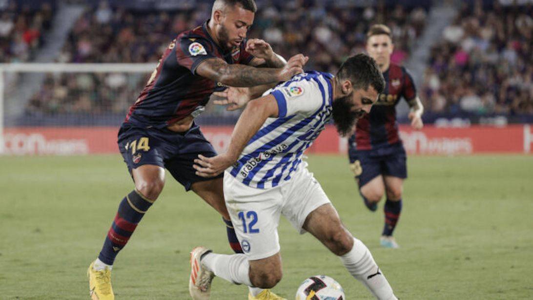 El Levante, tras un córner mal ejecutado por el Alavés, armó el contraataque con De Frutos, que se marchó solo, pero el exlevantinista Duarte se anticipó para robarle el esférico y, de inmediato, Villalibre lo intentó con un chut que se perdió por encima del larguero.