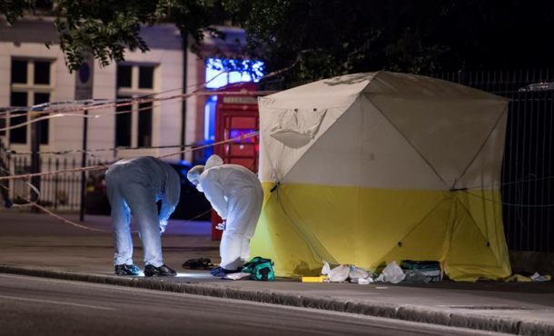 Efe – Una mujer murió y al menos otras cinco personas resultaron heridas con un cuchillo en un posible ataque terrorista perpetrado en el centro de Londres a última hora del miércoles, informaron esta madrugada varios medios locales. Según Press Association (PA), un hombre fue detenido después de que la policía le disparara con una pistola eléctrica tras el incidente, ocurrido en Russell Square. Russel Square (Reino Unidos), jueves 4 de agosto de 2016. Fotografía: Oficiales de policía investigan en la escena donde una mujer murió y varias personas resultaron heridas por un sospechoso ataque con cuchillo en la plaza Russell en Londres (Reino Unido). Efe.