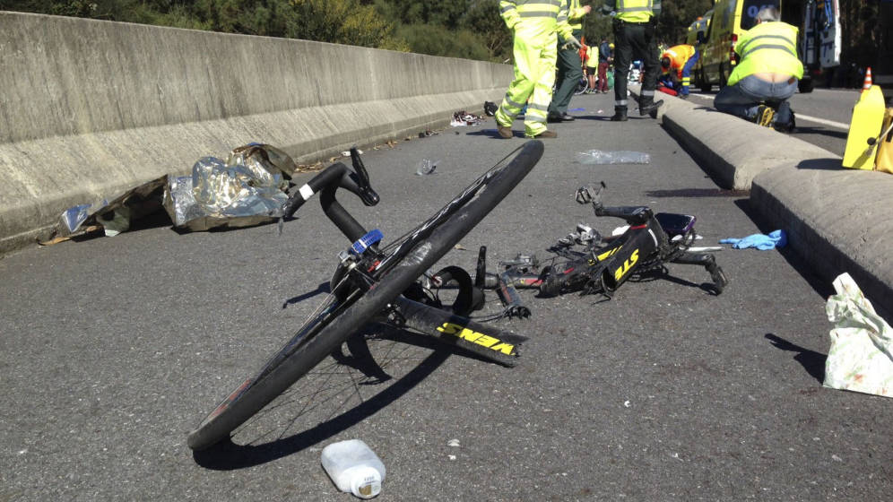 Agencias – Detenida una conductora que ha atropellado esta mañana, 13 de mayo de 2017, a 6 ciclistas y cuadruplicaba la tasa de alcohol. El accidente ha ocurrido alrededor de las 7.15 horas en el punto kilométrico 0,1 de la carretera T-704, en el término municipal español de Riudoms (Tarragona) Cataluña, cuando el turismo que conducía la mujer detenida ha invadido el carril contrario y ha atropellado a un grupo de seis ciclistas, tres de los cuales han resultado heridos. Riudoms (España), sábado 13 de mayo de 2017. Fotografía: Una imagen demasiado frecuente en las carreteras españolas. Archivo Efe.