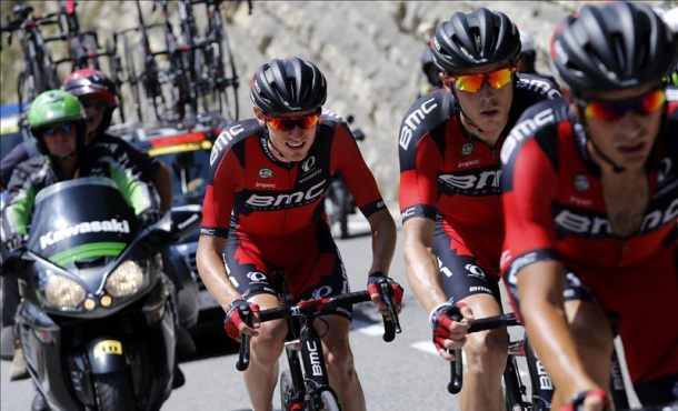 EFE – El estadounidense Tejay Van Garderen (BMC) ha abandonado la Vuelta a España debido a una caída en las calles de Murcia en la que se han visto involucrados varios corredores. Van Garderen, que también se retiró en el Tour de Francia debido a una enfermedad, quedó sentado en la acera doliéndose de la clavícula derecha en espera de ser evacuado al hospital. <Fotografía: El ciclista estadounidense Tejay Van Garderen (c), del equipo BMC Racing. Foto archivo/Efe>.