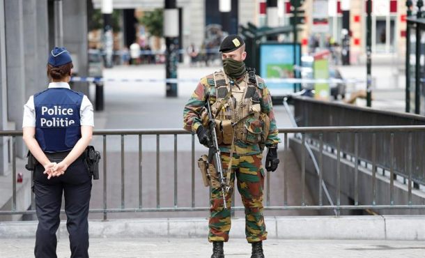 Efe – Varias calles de ese distrito, conocido por servir de refugio a supuestos responsables de atentados terroristas como los del 13 de noviembre de 2015 en París o del 23 de marzo pasado en la capital belga, fueron cortadas por la Policía y un helicóptero sobrevoló el área. Bruselas (Bélgica), sábado 14 de enero de 2017. Fotografía: Militares hacen guardia cerca de la estación central de Bruselas, Bélgica. Archivo Efe.
