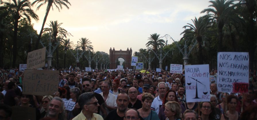 .»Los niños solo contagian amor y alegría», ha sido el lema principal de la concentración multitudinaria, más de 3.000 personas, según fuentes de la organización a Lasvocesdelpueblo. Varios padres y madres han exhibido lemas como la «Vacuna COVID 19 mata», «los niños no se tocan, entre otros