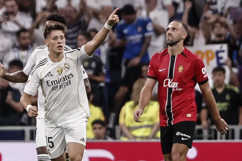 Madrid (Reino de España), sábado 30 de agosto de 2025 (Efe).- Victoria del Real Madrid ante el Mallorca | Dos goles en 73 segundos, de Arda Güler y Vinicius Junior, le dieron los tres puntos al Real Madrid ante el Mallorca (2-1) en un partido en el que tuvo que remontar el tanto inicial de Vedat Muriqi y en el que vio anulados tres tantos, dos de Kylian Mbappé por fuera de juego y otro, con polémica y tras cuatro minutos de revisión, de Arda Güler por mano.