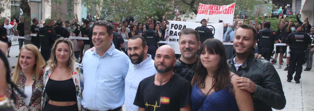 El portavoz de «Los 11 de Vox» en el Parlamento de Cataluña, Joan Garriga Doménech; junto a sus compañeros por Barcelona a la cámara catalana, Mónica Lora Cisquer y Manuel Jesús Acosta Elías (Manuel Acosta) y el coordinador de VOX en Mataró, José Casado Ortega han plantada cara medio centenar de grupos de la extrema izquierda y grupos separatistas, entre ellos varios inmigrantes magrebíes, quienes recibido a los simpatizantes y militantes de la formación verde con gesto obscenos e insultos.