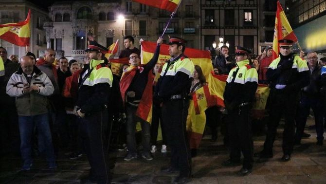 Algunos de los manifestantes también han denunciado la «manipulación de TV3» dirigiéndose a los periodistas que cubrían la concentración y han llamado «prensa catalana, manipuladora», además de retraer hicieran fotos.