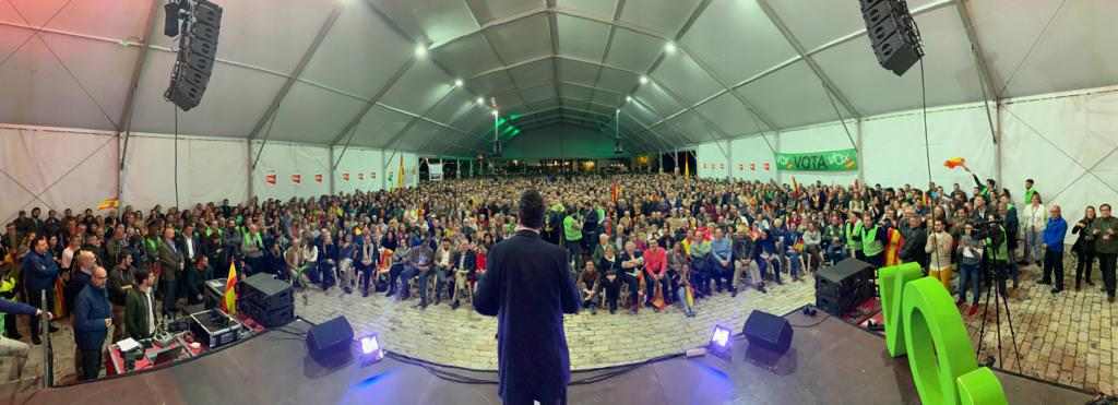 Con el siguiente orden de intervenciones, tras presentaciones, el candidato de VOX a la Junta de Andalucía, Francisco Serrano; el secretario general de VOX, Javier Ortega; el fundador de VOX, Ortega Lara; y el líder de VOX Santiago Abascal, VOX ha dado hoy el paso gigante que le llevará al poder en toda España, según las últimas encuestas, desde Andalucía.