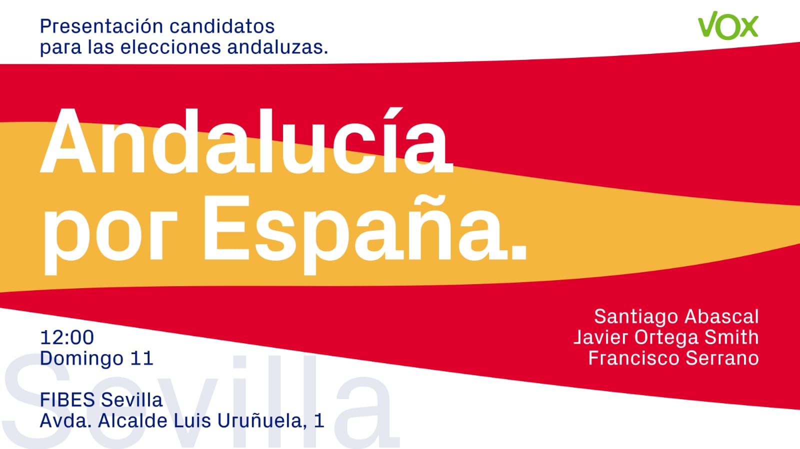 Según fuentes de esta formación ‘verde’ española, «participarán el Presidente de VOX Santiago Abascal, el Secretario General Javier Ortega Smith y el cabeza de lista de VOX por Sevilla Francisco Serrano».