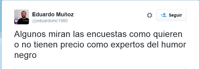Por su parte, el dirigente de Podemos, Eduardo Muños, ha replicado con un mensaje en su cuenta en las redes sociales Twitter esta tarde ironizando que «Algunos miran las encuestas como quieren o no tienen precio como expertos del humor negro» y citando unos de los comentarios relacionado a la queja del partido de Ignacio Garriga.