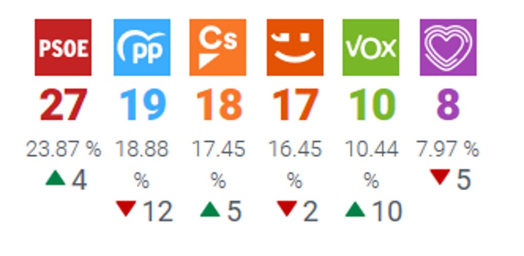 Aunque los populares tenían la vista puesta en replicar un Gobierno a la andaluza, la distribución del voto conservador y la hegemonía de la izquierda lo imposibilitará, ya que los populares pasan de 31 a 19 escaños.