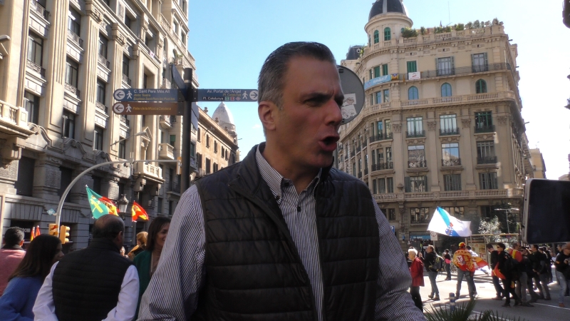 Vídeo. Barcelona, 10.11.2018. Declaraciones del secretario general de VOX, Javier Ortega, hoy durante la manifestación de Jusapol en Barcelona.