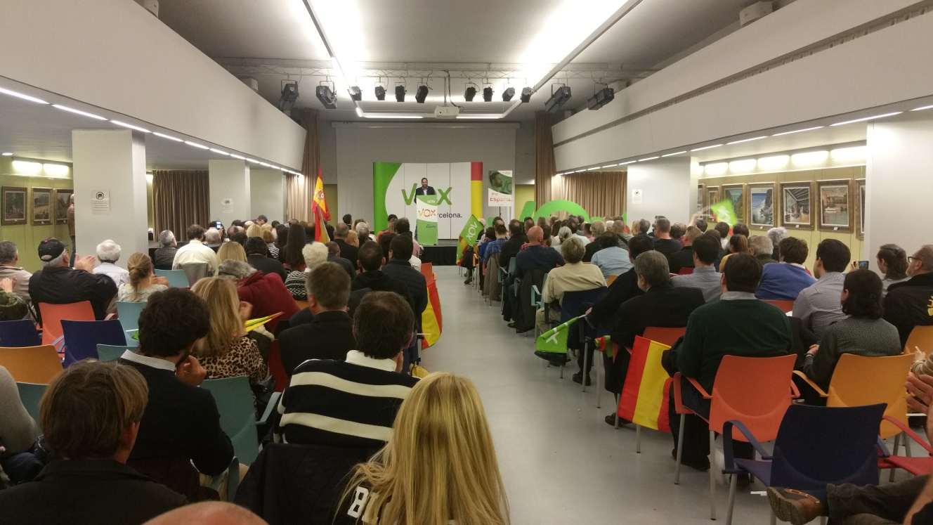 El auditorio del Centro Cívico del barrio «La Salud» de Badalona, Oficina Municipal de Distrito 4, ubicado en la Avenida del Marquesado de San Mori sin número, ha acogido esta tarde el primer mitin de campaña de VOX Barcelona, después de la pegada de carteles de VOX esta madrugada en el Monumento de El Tamborilero del Bruc.