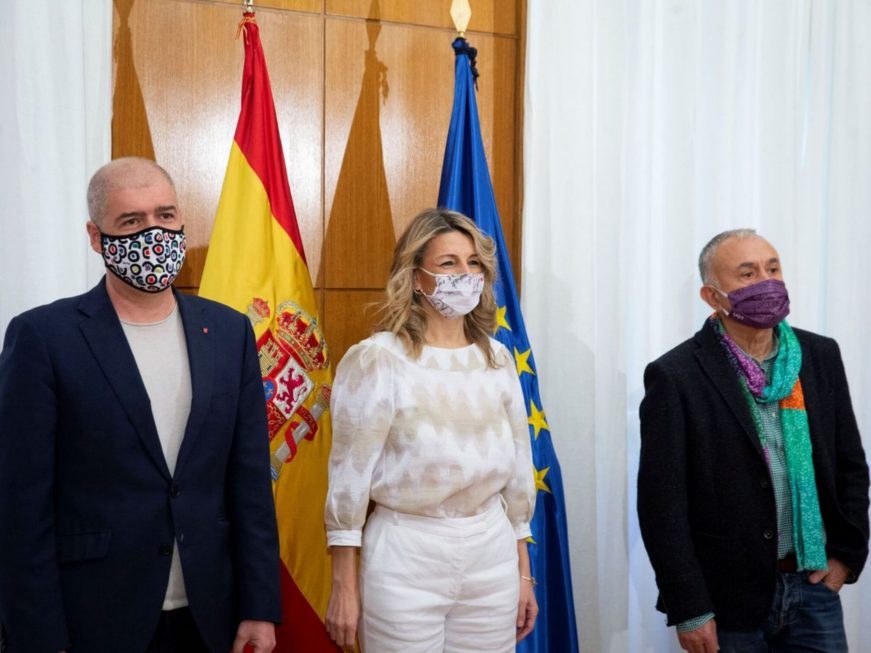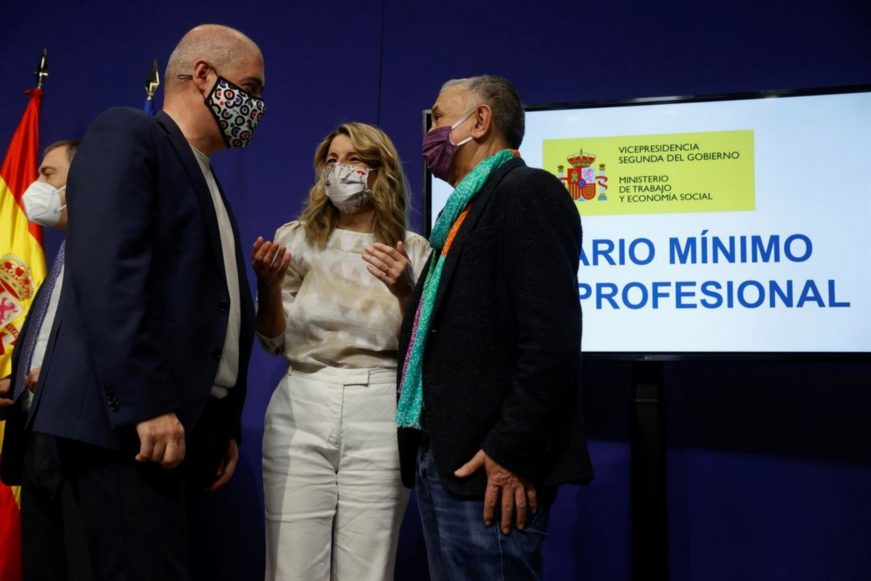 Efe.- Madrid (España), miércoles 9 de febrero de 2022.- El Gobierno ha pactado con los sindicatos elevar el salario mínimo interprofesional (SMI) hasta los 1.000 euros en 14 pagas desde el 1 de enero de 2022, tras una negociación que ha concluido sin el acuerdo de la patronal.